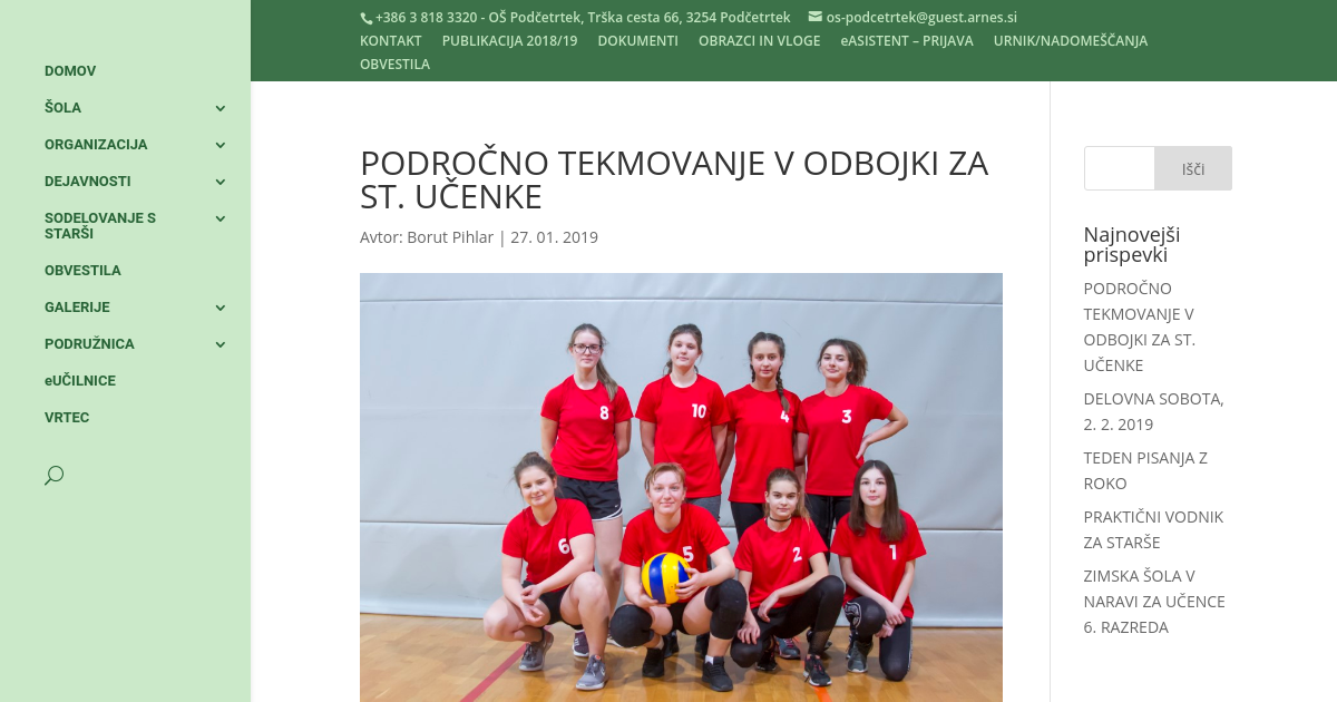 OŠ Braslovče je, v torek 15. januarja, gostila področno tekmovanje v odbojki za starejše učenke. V skupinskem delu so se naše učenke najprej pomerile z vrstnicami iz OŠ Vojnik. Po izenačeni tekmi so za odtenek boljše bile igralke iz Vojnika. V drugi tekmi pa naše igralke niso imele možnosti proti odličnim domačinkam, tudi kasnejšim zmagovalkam. Tako so letošnje tekmovanje zaključile na 5. -8. mestu.