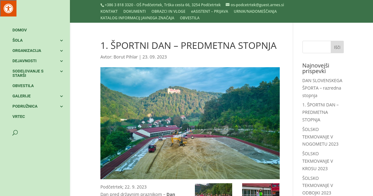 Podčetrtek; 22. 9. 2023 Dan pred državnim praznikom – Dan slovenskega športa, smo z učenci in učenkami od 6. do 9. razreda izvedli prvi športni dan v letošnjem šol. letu. Učenci in učenke so se najprej pomerili v krosu, kasneje pa fantje še v nogometu in dekleta v odbojki. REZULTATI: KROS ODBOJKA NOGOMET