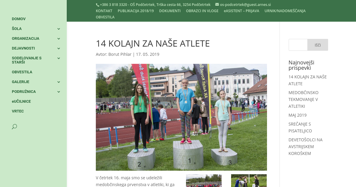V četrtek 16. maja smo se udeležili medobčinskega prvenstva v atletiki, ki ga je za šole UE Šmarje pri Jelšah organiziral AK Šentjur. Naša 45 članska ekipa je dosegla odlične rezultate. Naši atleti so štirinajstkrat stopili na zmagovalne stopničke. Osvojili so tri prva, tri druga in osem tretjih mest. V ponedeljek 20. maja, najboljše po rezultatih, čaka finale področnega tekmovanja v Celju, kamor se je uvrstilo 18 posameznikov in obe štafeti 4x100m Rezultate si lahko pogledate v rubriki ŠPORT – TEKMOVANJA – ATLETIKA.