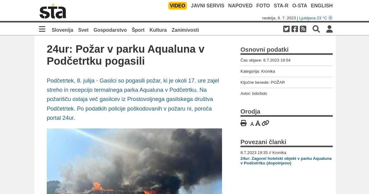 Gasilci so pogasili požar, ki je okoli 17. ure zajel streho in recepcijo termalnega parka Aqualuna v Podčetrtku. Na požarišču ostaja več gasilcev iz Prostovoljnega gasilskega društva Podčetrtek. Po podatkih policije poškodovanih v požaru ni, poroča portal 24ur.