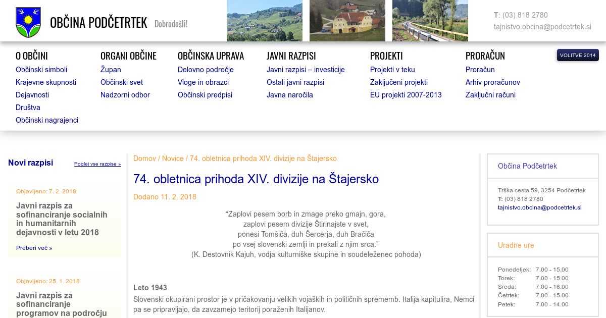 “Zaplovi pesem borb in zmage preko gmajn, gora, zaplovi pesem divizije Štirinajste v svet, ponesi Tomšiča, duh Šercerja, duh Bračiča po vsej slovenski zemlji in prekali z njim srca.” (K. Destovnik Kajuh, vodja kulturniške skupine in soudeleženec pohoda) Leto 1943 Slovenski okupirani prostor je v pričakovanju velikih vojaških in političnih sprememb. Italija kapitulira, Nemci