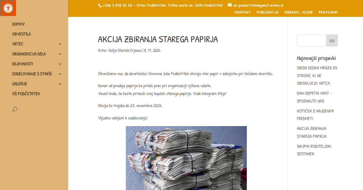Obveščamo vas, da devetošolci Osnovne šole Podčetrtek zbirajo star papir v zabojniku pri šolskem dvorišču.