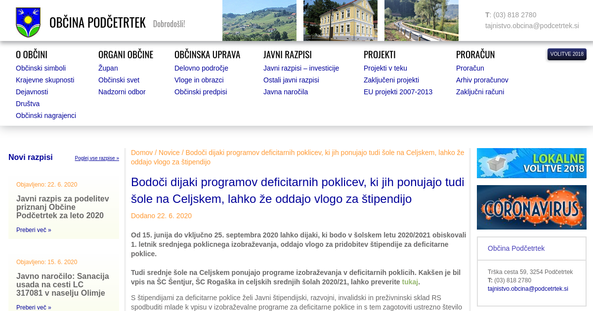 Od 15. junija do vključno 25. septembra 2020 lahko dijaki, ki bodo v šolskem letu 2020/2021 obiskovali 1. letnik srednjega poklicnega izobraževanja, oddajo vlogo za pridobitev štipendije za deficitarne poklice. Tudi srednje šole na Celjskem ponujajo programe izobraževanja v deficitarnih poklicih. Kakšen je bil vpis na ŠC Šentjur, ŠC Rogaška in celjskih srednjih šolah 2020/21,