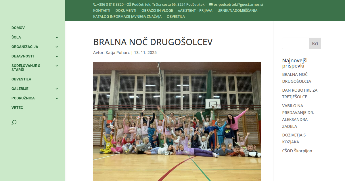 V četrtek, 12. novembra 2025, so se drugošolci v popoldanskih urah vrnili v šolo, tokrat nekoliko drugače kot običajno. S polnimi nahrbtniki pričakovanj in nasmehi na obrazih so se podali v nepozabno bralno noč.