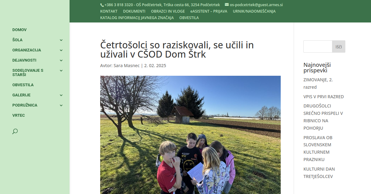 Četrtošolci so preživeli čudovit teden v CŠOD Dom Štrk. Teden je bil poln pustolovščin, smeha in nepozabnih trenutkov. Na slikovitem obrobju subpanonske pokrajine so se na zabaven način učenci učili o vremenskih pojavih, skrivnostih vodovja Ptujskega polja ter razmišljali o podnebnih spremembah. Ko pa ni bilo časa za učenje, so zagnano uživali na prostem – na igrišču so igrali nogomet, odbojko ter metali na koš, v telovadnici pa so razvijali reflekse ob namiznem tenisu. Kot pravi mali pustolovci so se preizkusili tudi v lokostrelstvu in osvojili višave na plezalni steni. Večeri so bili prav poseben čas. Ob družabnih in športnih igrah je smeh odmeval v telovadnici in jedilnici, saj je bilo vzdušje zelo prijetno. In ker je Ptuj tako blizu, ni manjkalo niti srečanje s kurenti – spoznali smo njihove zanimive šege in navade, ki so začinile teden s pridihom tradicije. Piko na i je postavil večer “Pokaži, kaj znaš”, kjer so učenci pokazali svoje neverjetne talente – od petja, plesa do posebnih spretnosti. Za tem smo v ritmu glasbe zaplesali in tako zaključili ta nepozabni teden. Z glavami polnimi lepih spominov in srci ogretimi z nepozabnimi doživetji so se v petek učenci vrnili domov v objem staršev, ki so jih nekateri, kljub vsem doživetem, tudi malo pogrešali.