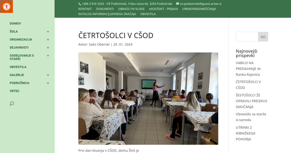Prvi dan bivanja v CŠOD, domu Štrk je hitro minil. Po prihodu v dom smo spoznali učitelje in se seznanili s pravili, ki jih bomo upoštevali v času bivanja. Po namestitvi v sobe je sledilo kosilo ter prve dejavnosti – spoznavanje vremenskih pojavov in lokostrelstvo. Na večernem pohodu s svetilkami smo se orientirali po zvezdah. Orientacija je zelo pomembna stvar, saj se moramo vrniti do našega doma. Učenci in učitelji vas lepo pozdravljamo.