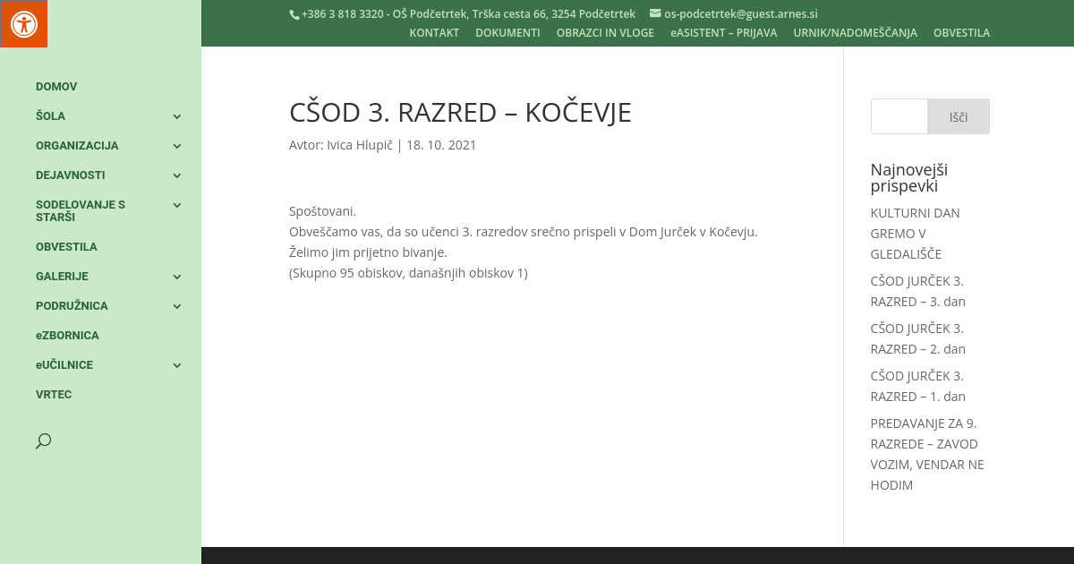 Spoštovani. Obveščamo vas, da so učenci 3. razredov srečno prispeli v Dom Jurček v Kočevju. Želimo jim prijetno bivanje.