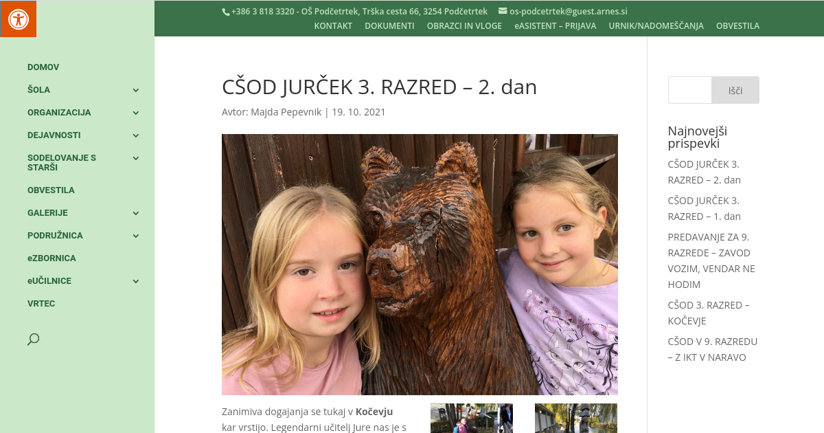 Zanimiva dogajanja se tukaj v Kočevju kar vrstijo. Legendarni učitelj Jure nas je s svojimi doživeto pripovedovanimi zgodbami popeljal skozi mesto. Poslušali smo o Hermanu, o Frideriku in Veroniki pa o nastanku jezera, o črnem zlatu… Učiteljica Marina nam je razkrivala skrivnosti gozda in živali v njem. Pravo doživetje pa je bilo seveda tudi druženje v naših sobah. Lepo se imamo.