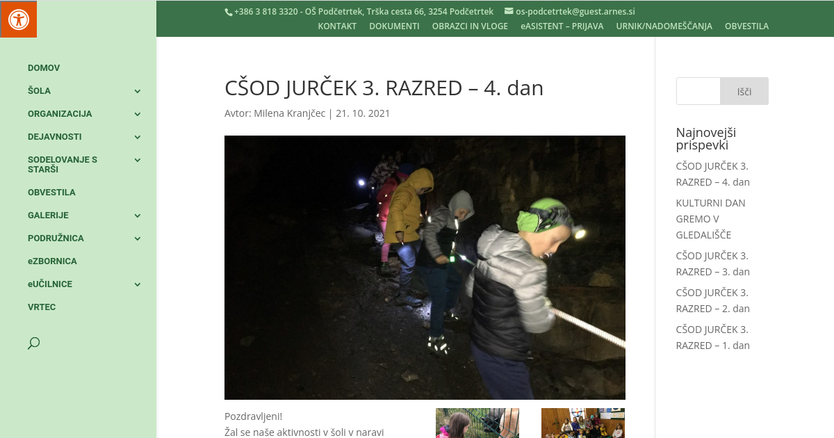 Pozdravljeni! Žal se naše aktivnosti v šoli v naravi počasi zaključujejo. Danes je naš predzadnji dan bivanja v Kočevju in smo sklenili, da ga bomo dodobra izkoristili. Po zajtrku smo se odpravili v Medvedovo jamo. Le zakaj ima takšno ime? Posebej smo uživali v športnih dejavnostih. Popoldan smo streljali z lokom. Dogodivščine iz narave pa so naši stalni spremljevalci. Dan smo zaključili s plesom. Jutri nas čaka še tekmovanje iz orientacije. Več vam povemo, ko pridemo domov. Lepo vas pozdravljamo in se kmalu vidimo.