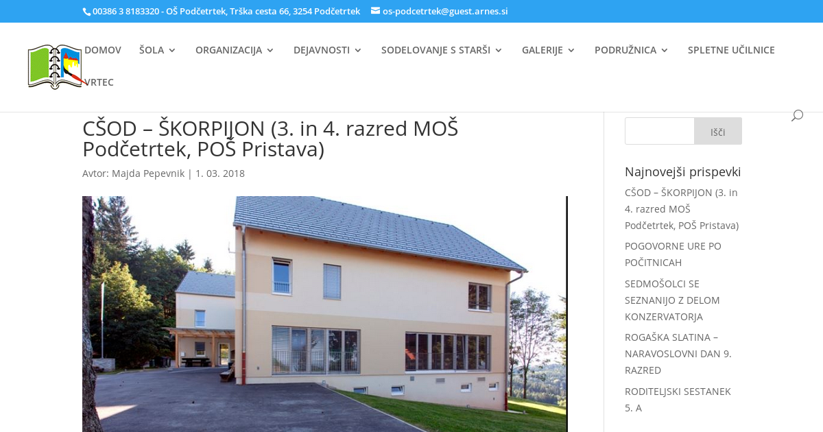 CŠOD – ŠKORPIJON (3. in 4. razred MOŠ Podčetrtek, POŠ Pristava)