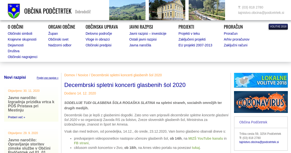 SODELUJE TUDI GLASBENA ŠOLA ROGAŠKA SLATINA na spletni straneh, socialnih omrežjih ter drugih medijih. Decembrski čas je lepši z glasbenimi dogodki. Zato smo vam pripravili decembrske spletne koncerte glasbeni šol 2020 v so organizaciji Zavoda RS za šolstvo, Zveze slovenskih glasbenih šol, Ministrstva za izobraževanje, znanost in šport ter Arnesa. Vsak dan med tednom, od