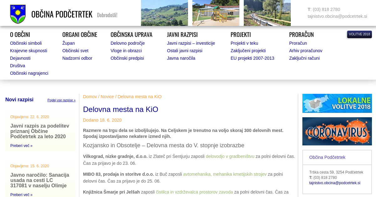 Razmere na trgu dela se izboljšujejo. Na Celjskem je trenutno na voljo skoraj 300 delovnih mest. Spodaj izpostavljamo nekatere izmed njih. Kozjansko in Obsotelje – Delovna mesta do V. stopnje izobrazbe Vilkograd, nizke gradnje, d.o.o. iz Zlateč pri Šentjurju zaposli delovodjo v gradbeništvu za polni delovni čas. Čas za prijavo je do 23. 06. MIBO 83, prodaja in storitve d.o.o. iz