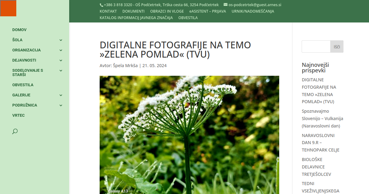V ponedeljek, 22. 5. 2024, so učenci 6. a razreda v okviru dejavnosti Tednov vseživljenjskega učenja fotografirali z mobilnimi telefoni in tablicami. Najprej so spoznali osnove fotografiranja in se seznanili s koristnimi nasveti in tehnikami. Nastajale so fotografije na temo »ZELENA POMLAD«. Fotografiranje je potekalo v okolici šole. Poglejte, kaj je nastalo.