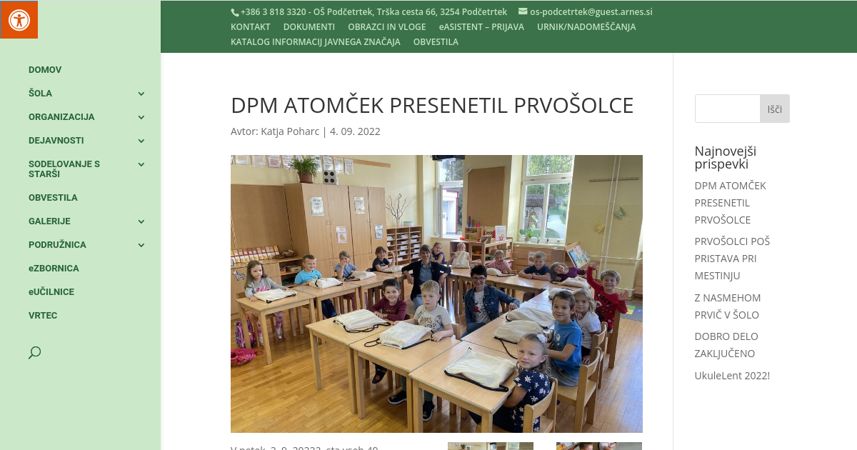 V petek, 2. 9. 20222, sta vseh 49 prvošolcev na OŠ Podčetrtek in POŠ Pristava pri Mestinju obiskali Patricija in Jerneja iz Društva prijateljev mladine Atomček Podčetrtek. Naše najmlajše sta razveselili z vrečko presenečenja, v kateri se je skrivalo veliko uporabnih stvari in jim zaželeli vse dobro ob vstopu v šolo.