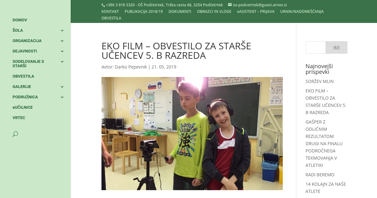 EKO FILM – OBVESTILO ZA STARŠE UČENCEV 5. B RAZREDA