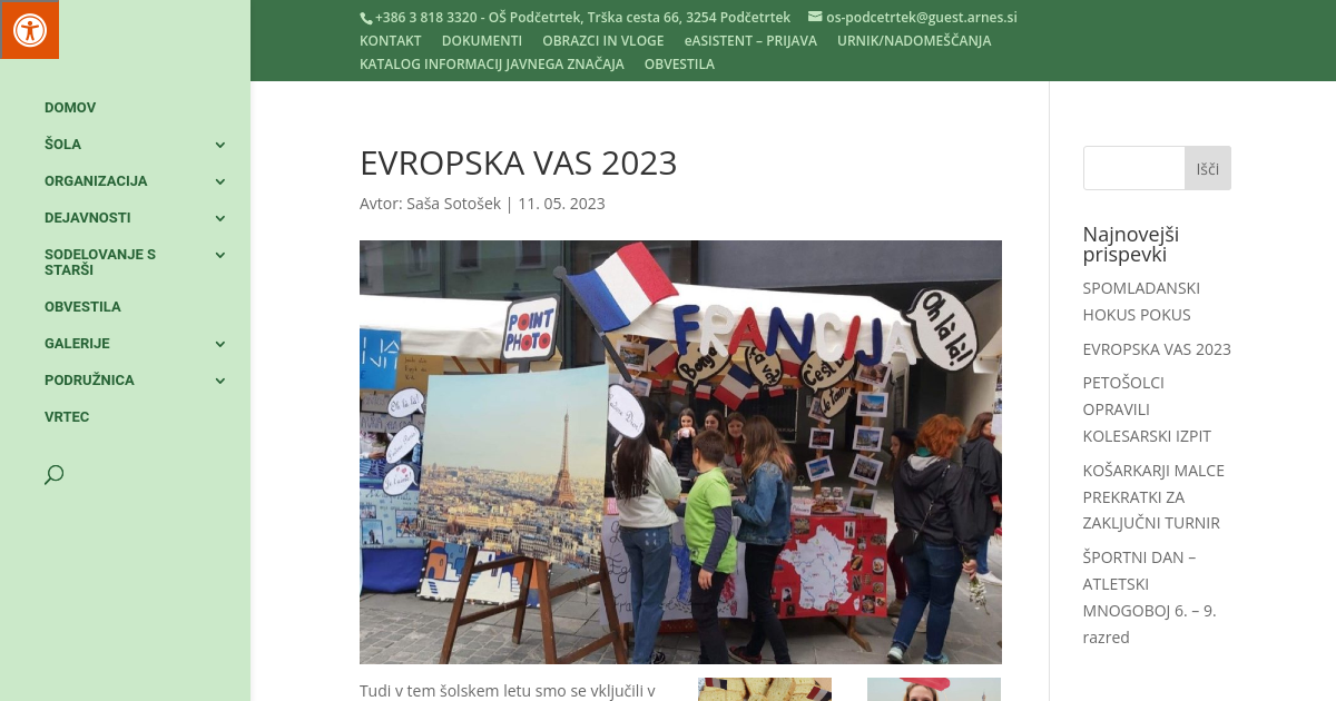 Tudi v tem šolskem letu smo se vključili v projekt Evropska vas, katerega namen je spodbuditi medkulturno razumevanje, toleranco, solidarnost, spoznavanje drugih narodov in držav v Evropski uniji ter hkrati povečati zavedanje lastne kulturne identitete.