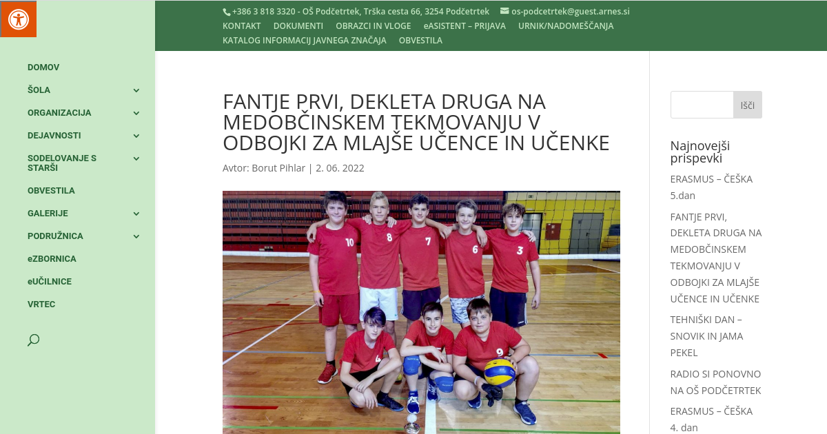 V četrtek 2. junija se je v Rogatcu končala letošnja sezona šolskih odbojkarskih tekmovanj. Zaključili so jo mlajši učenci in učenke in ponovili uspeh obeh starejših ekip. Fantje so postali medobčinski prvaki, dekleta pa so po razburljivem finalu morale priznati premoč vrstnicam iz Rogatca. Še bolj kot uvrstitve, pa je pomembno veselje in navdušenje učencev in učenk za odbojkarsko igro, ki jo takšno tekmovanje prinese.