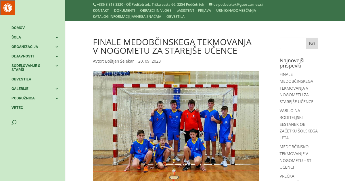 Na letošnjem finalnem turnirju medobčinskega tekmovanja v nogometu so nastopili tudi naši učenci. Turnir je potekal na OŠ Šmarje pri Jelšah v prvi tekmi pa so se naši učenci pomerili z vrstniki iz I. OŠ Rogaška Slatina. V izenačenem in napetem obračunu so nasprotniki iz Rogaške slavili z 2:1, kar je pomenilo, da bodo naši fantje igrali tekmo za tretje mesto. Tam so naši nogometaši morali priznati premoč učencem OŠ Šmarje pri Jelšah, ki so bili uspešnejši s 3:0.