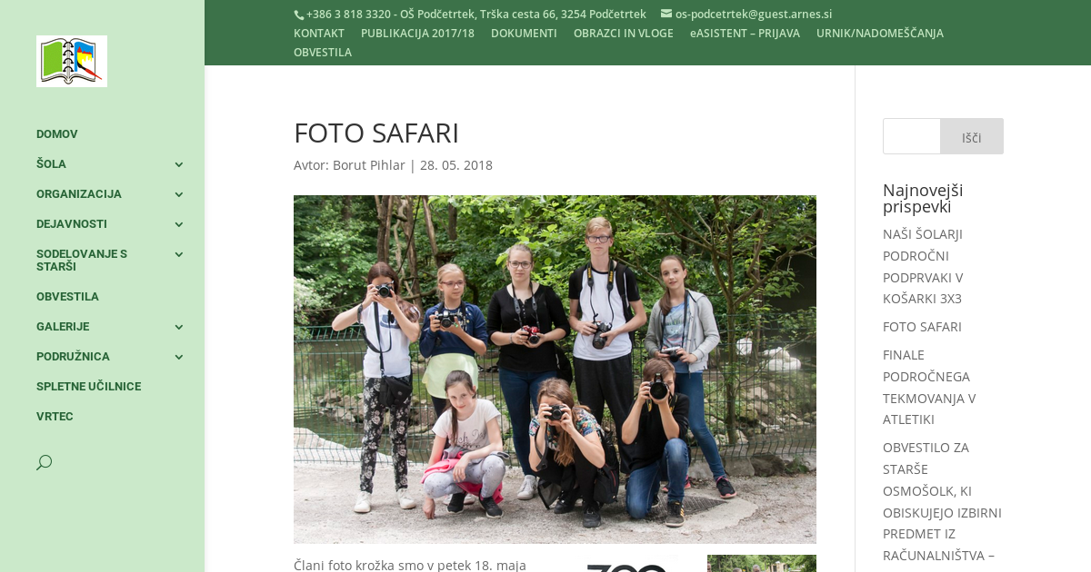 Člani foto krožka smo v petek 18. maja 2018 obiskali živalski vrt v Ljubljani. Izkoristili smo ponudbo ZOO Ljubljana in pod vodstvom fotografinje in skrbnikov živali izvedli foto safari, ki nam je omogočil, da smo fotografirali nekatere živali znotraj ograd oz. se jim približali bolj kot je običajno za obiskovalce. Preživeli smo čudovit dan, vas pa vabimo, da si v sliki pogledate kaj smo počeli in portrete čudovitih živali.