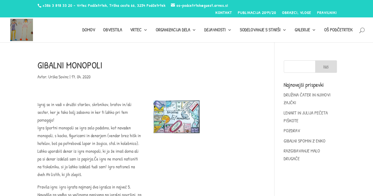 Igraj se in vadi v družbi staršev, skrbnikov, bratov in/ali sester, ker je tako bolj zabavno in ker ti lahko pri tem pomagajo! Igra športni monopoli se igra zelo podobno, kot navaden monopoli, s kocko, figuricami in denarjem (vendar brez hišk in hotelov, boš pa potreboval lopar in žogico, stol in kolebnico). Lahko uporabiš denar iz igre monopoli, ki jo že imaš doma ali pa si denar izdelaš sam iz papirja.Če igre ne moreš natisniti na tiskalniku, si jo lahko izdelaš tudi sam! Igro natisneš na dveh A4 listih, ki jih zlepiš.