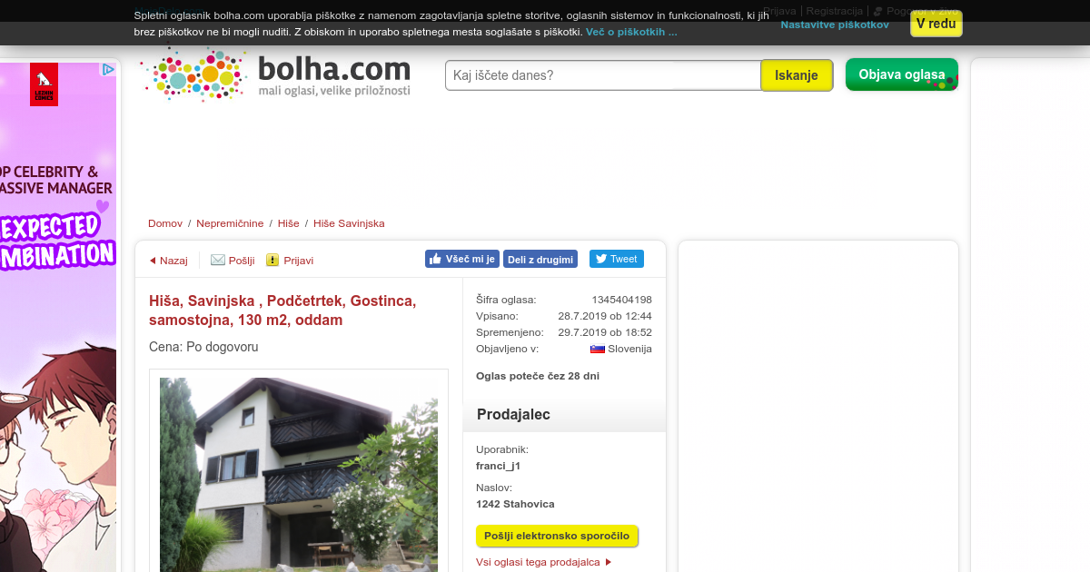 Kraj/naselje: Gostinca Tip:samostojna Velikost: 130, 00 m2 Velikost parcele: 3000, 00 m2 Leto izgradnje: 1950 Zadnja adaptacija: 1996