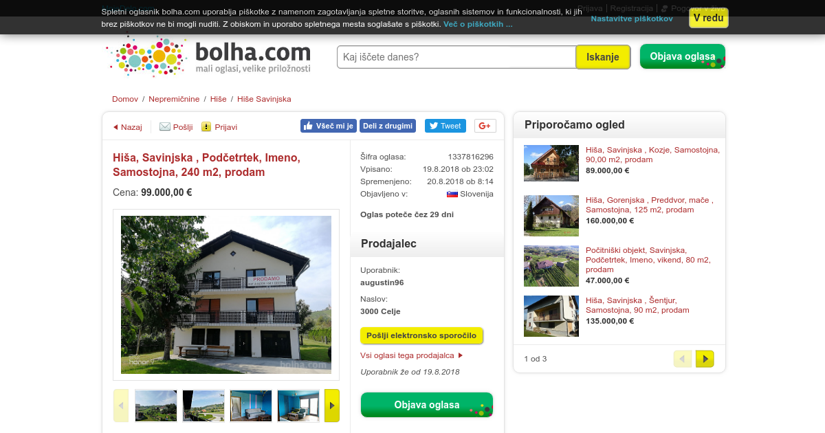 Kraj/naselje: Imeno Tip:samostojna Velikost: 240, 00 m2 Velikost parcele: 400, 00 m2 Leto izgradnje: 1989 Zadnja adaptacija: 2018