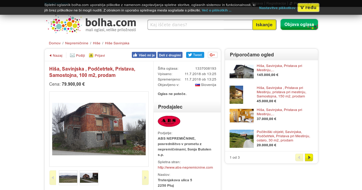 Kraj/naselje: Pristava Tip:samostojna Velikost: 100, 00 m2 Velikost parcele: 46431, 00 m2 Leto izgradnje: 1970