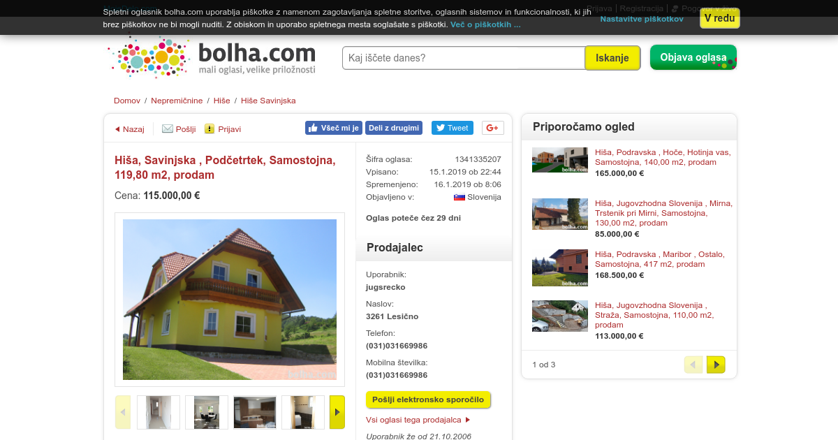 Tip: Samostojna Velikost: 119, 80 m2 Velikost parcele: 683, 00 m2 Leto izgradnje: 2012