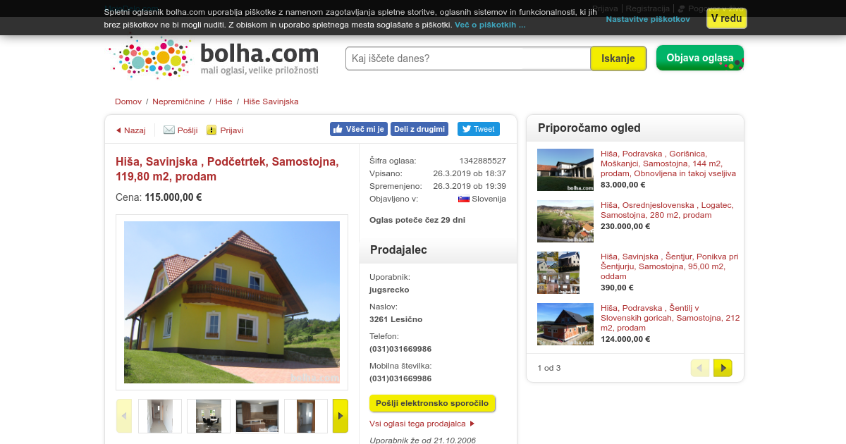 Tip: Samostojna Velikost: 119, 80 m2 Velikost parcele: 683, 00 m2 Leto izgradnje: 2012