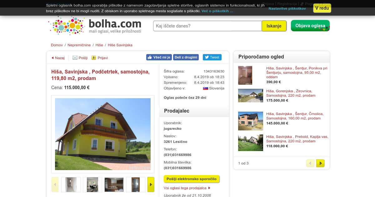 Tip: Samostojna Velikost: 119, 80 m2 Velikost parcele: 683, 00 m2 Leto izgradnje: 2012