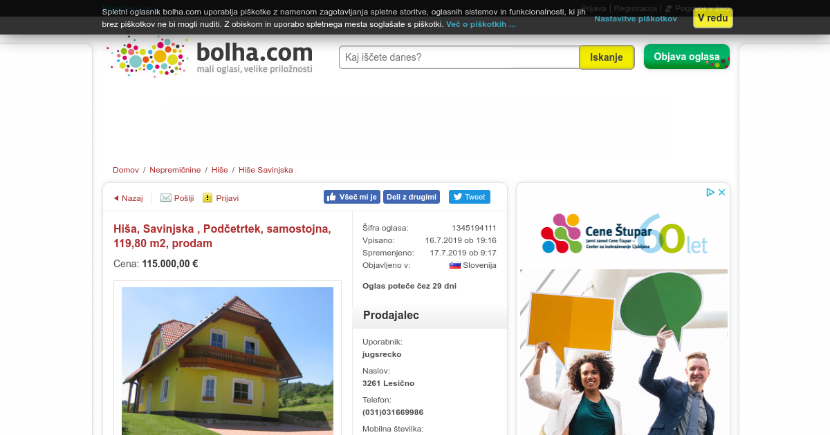 Tip: Samostojna Velikost: 119, 80 m2 Velikost parcele: 683, 00 m2 Leto izgradnje: 2012