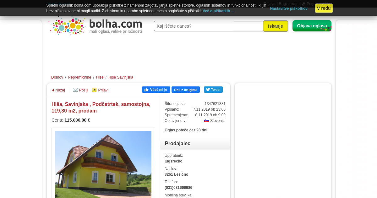 Tip: Samostojna Velikost: 119, 80 m2 Velikost parcele: 683, 00 m2 Leto izgradnje: 2012