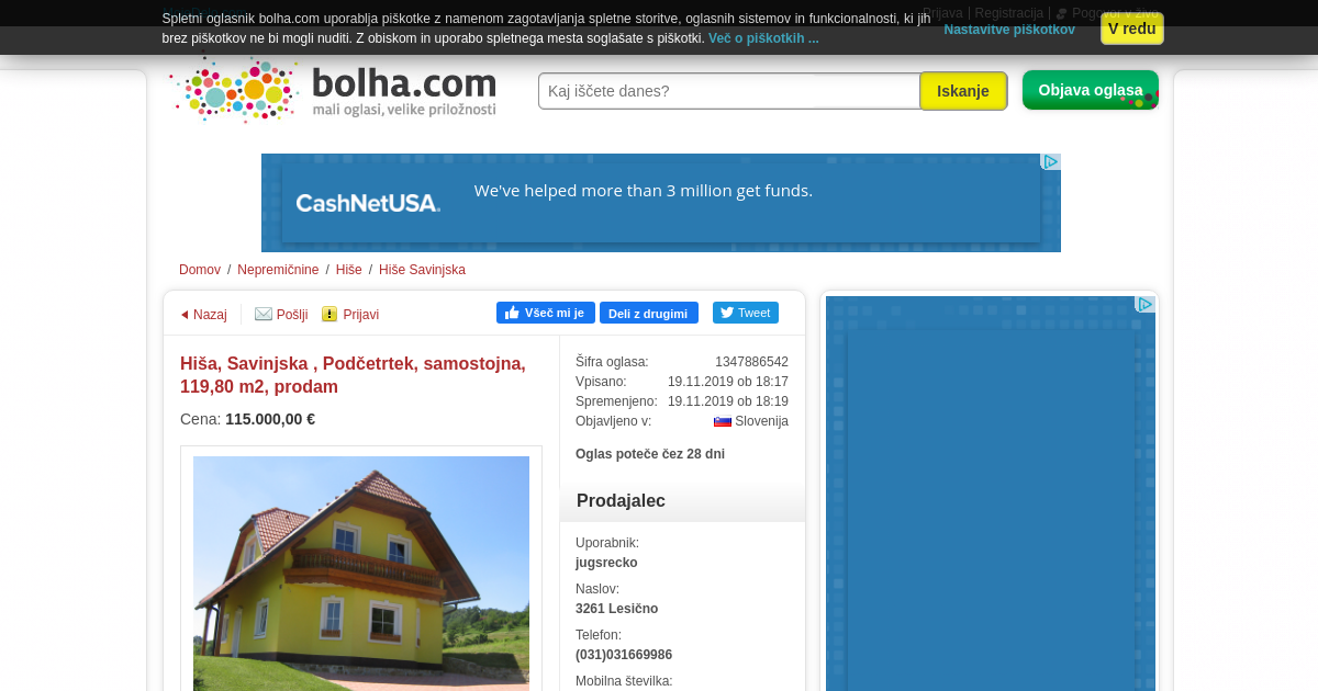 Tip: Samostojna Velikost: 119, 80 m2 Velikost parcele: 683, 00 m2 Leto izgradnje: 2012