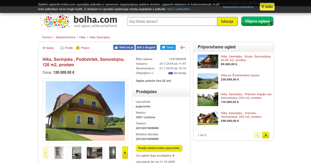 Tip: Samostojna Velikost: 120, 00 m2 Velikost parcele: 683, 00 m2 Leto izgradnje: 2012