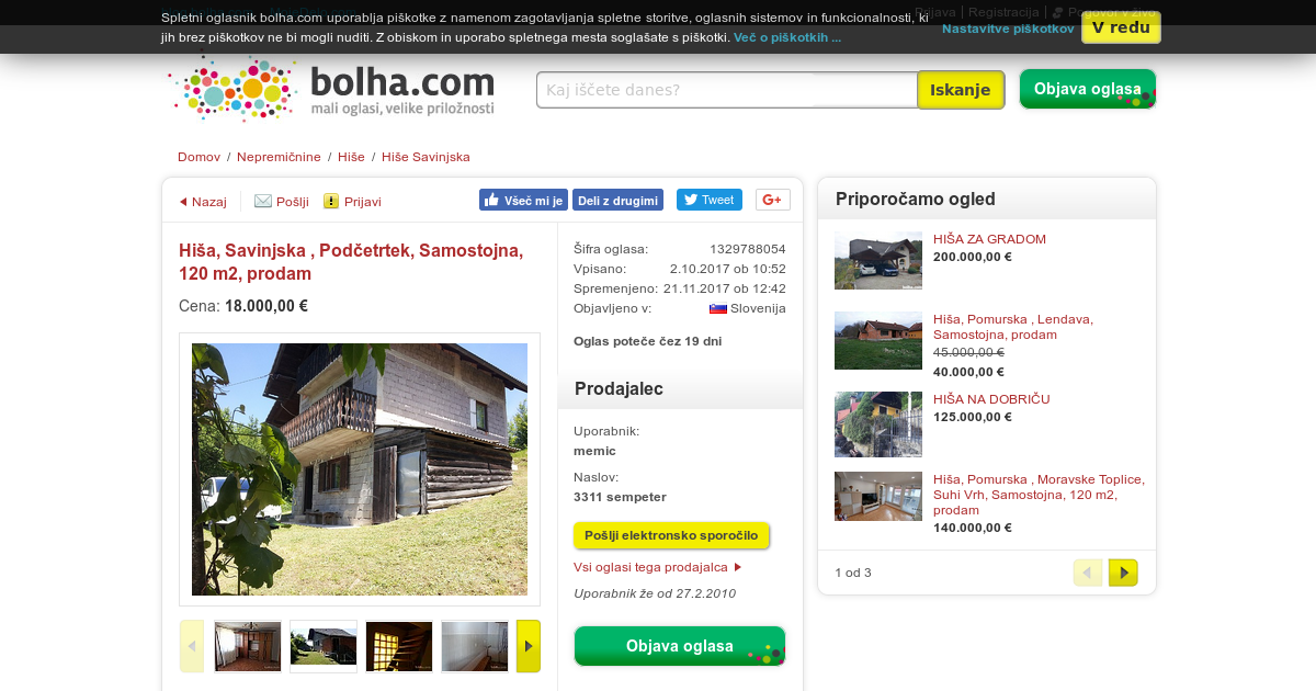 Tip: Samostojna Velikost: 120, 00 m2 Velikost parcele: 6000, 00 m2 Leto izgradnje: 1985 Zadnja adaptacija: 2002