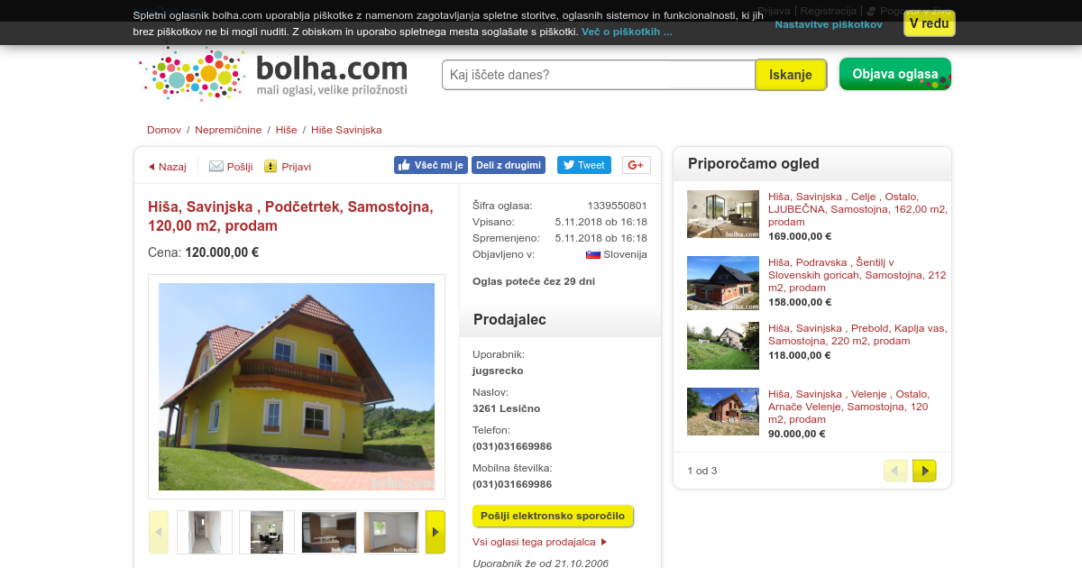 Tip: Samostojna Velikost: 120, 00 m2 Velikost parcele: 683, 00 m2 Leto izgradnje: 2012