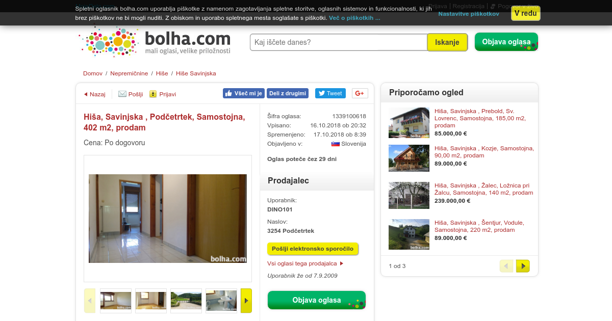 Tip: Samostojna Velikost: 402, 00 m2 Velikost parcele: 1628, 00 m2 Leto izgradnje: 1973 Zadnja adaptacija: 2004