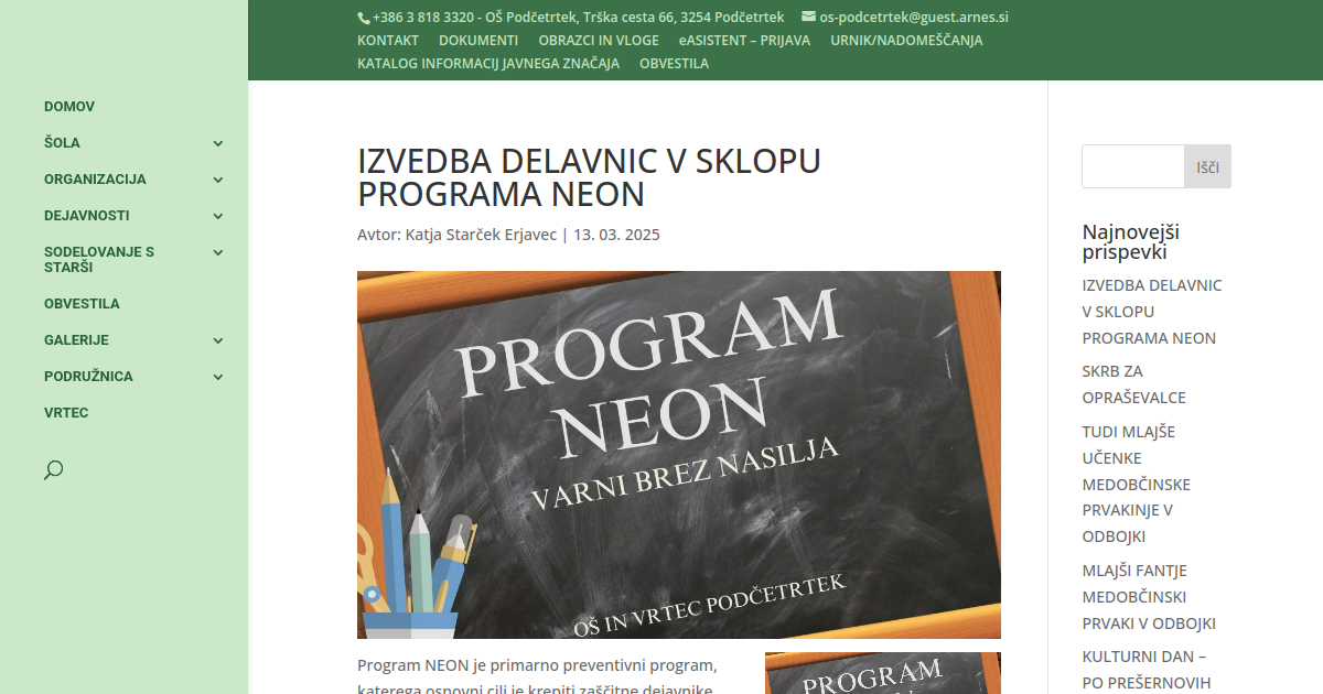 Program NEON je primarno preventivni program, katerega osnovni cilj je krepiti zaščitne dejavnike otrok. Z Neon programom delujemo proaktivno s ciljem, da bi se učenci znali in zmogli zaščititi pred nasiljem, zlorabo.