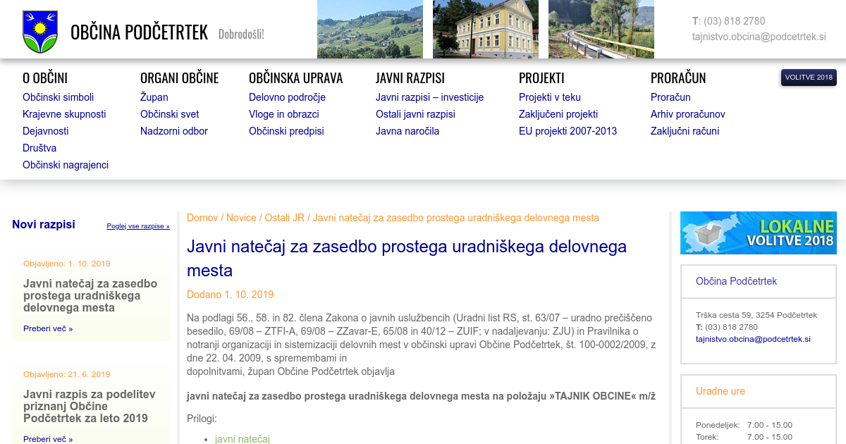 Javni natečaj za zasedbo prostega uradniškega delovnega mesta
