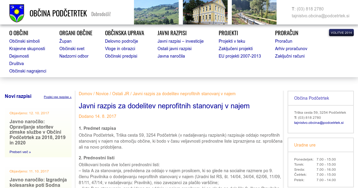 Javni razpis za dodelitev neprofitnih stanovanj v najem