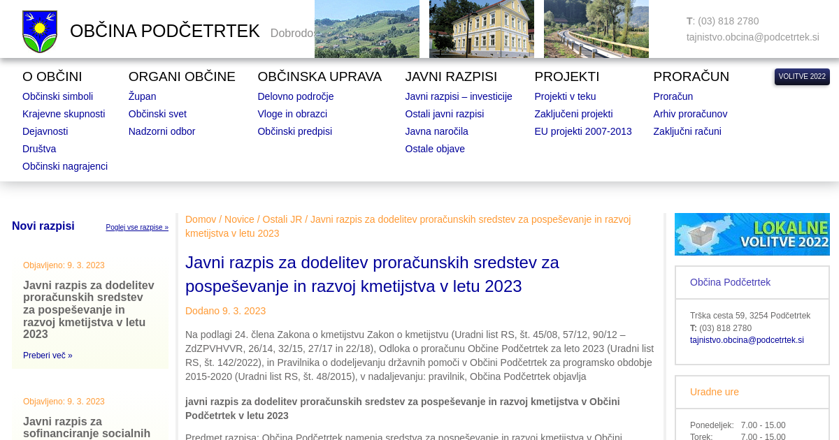 Javni razpis za dodelitev proračunskih sredstev za pospeševanje in razvoj kmetijstva v letu 2023