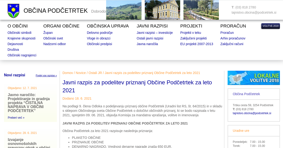 Javni razpis za podelitev priznanj Občine Podčetrtek za leto 2021