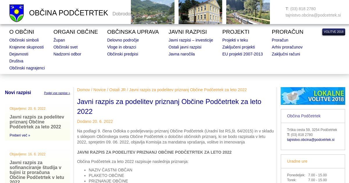 Javni razpis za podelitev priznanj Občine Podčetrtek za leto 2022