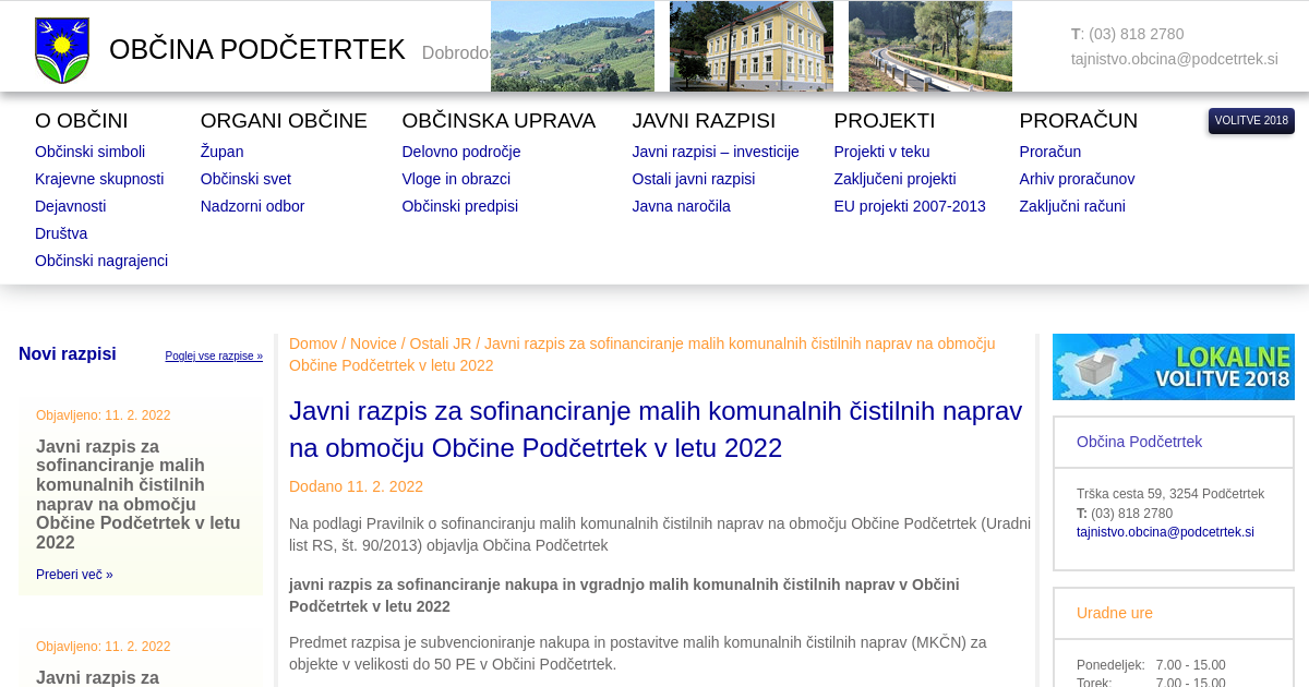 Javni razpis za sofinanciranje malih komunalnih čistilnih naprav na območju Občine Podčetrtek v letu 2022