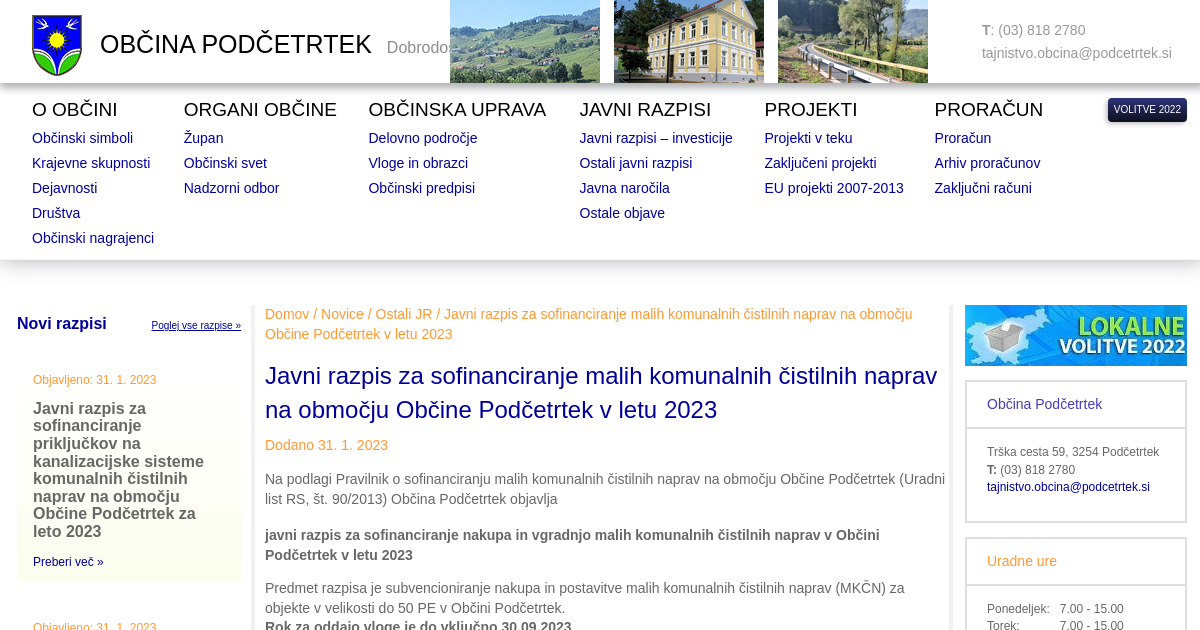 Javni razpis za sofinanciranje malih komunalnih čistilnih naprav na območju Občine Podčetrtek v letu 2023