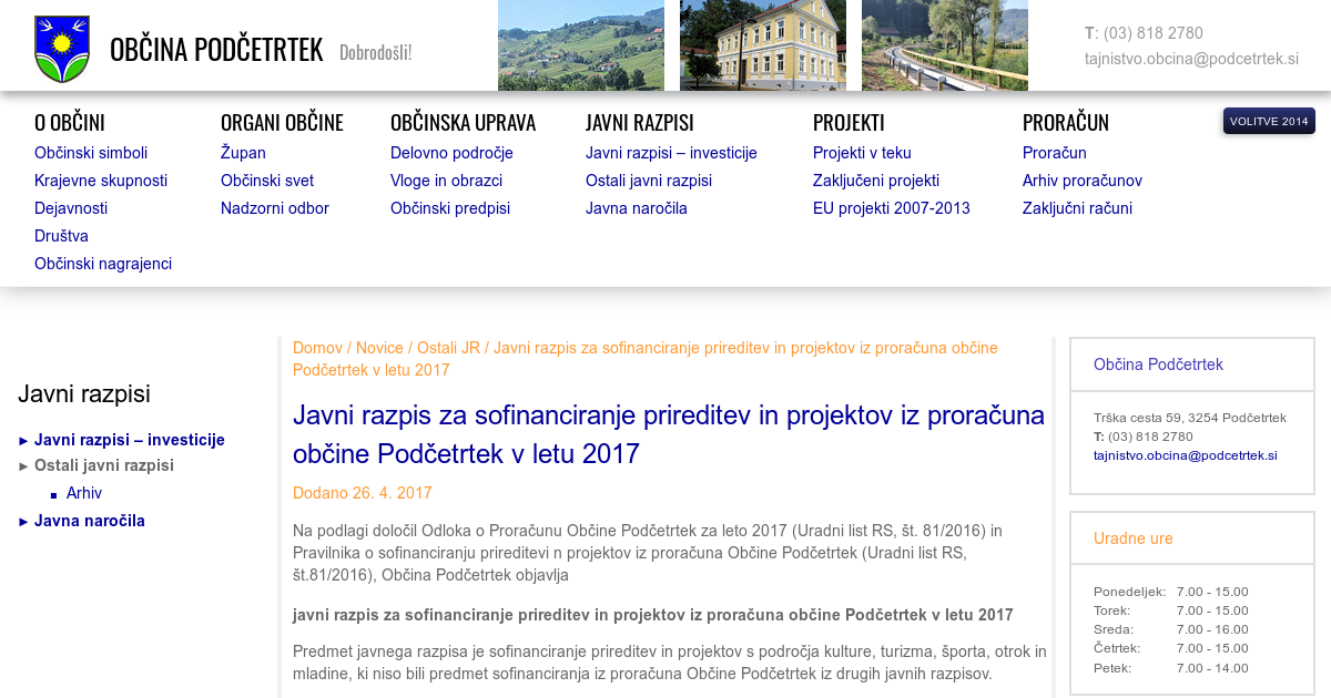 Javni razpis za sofinanciranje prireditev in projektov iz proračuna občine Podčetrtek v letu 2017