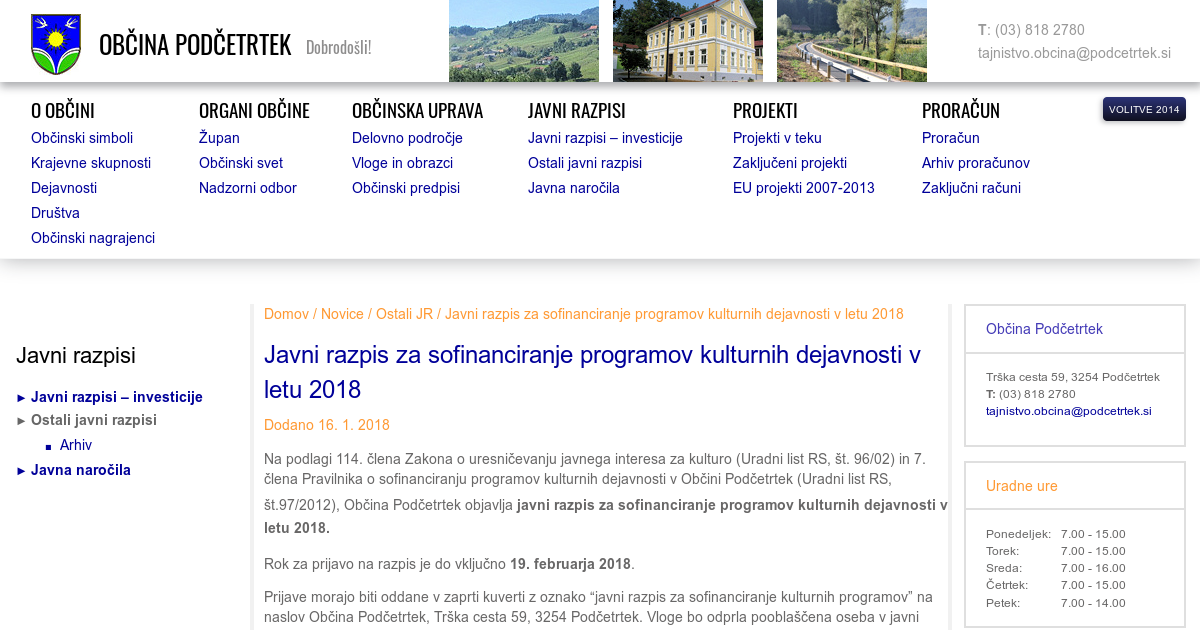 Javni razpis za sofinanciranje programov kulturnih dejavnosti v letu 2018