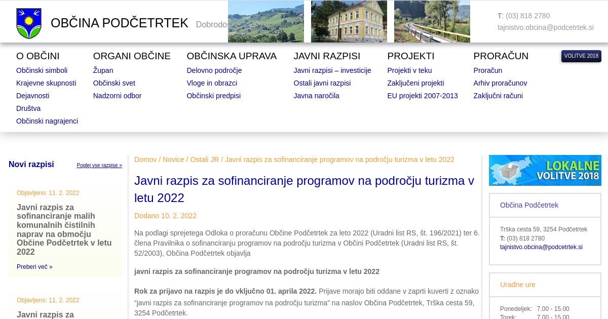 Javni razpis za sofinanciranje programov na področju turizma v letu 2022