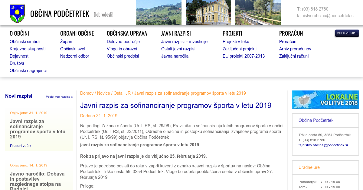 Javni razpis za sofinanciranje programov športa v letu 2019
