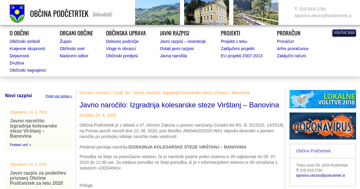 Javno naročilo: Izgradnja kolesarske steze Virštanj – Banovina